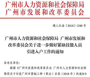 緊缺工種入戶廣州